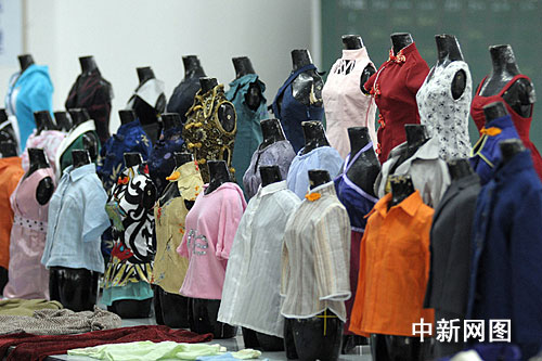 中新网宁波9月28日电(记者 徐小勇 通讯员 王国海)服装是一种记忆,也是一幅穿在身上的历史画卷,它以非文本的方式记录着时代的变迁,社会的发展,文明的进步。国庆节前夕,浙江纺织服装职业技术学院工艺社的60名大二学生用60套 (件)反映60年来不同年代不同款式的缩小版男、女服装在学院展出,以此方式来庆祝祖国60周年华诞的到来。据悉,这些服装从设计、打版、选材到缝制都是出自学生之手,利用课余时间制作完成的。