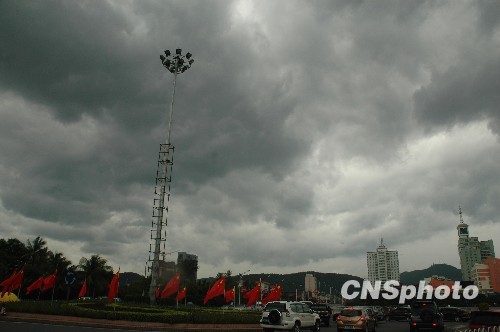 9月28日,海南三亚上空乌云密布。据海南省气象台预报,今年第16号台风“凯萨娜”预计当晚到29日经过三亚所在的海南岛南部近海,30日向越南中部沿海地区靠近。28日夜间起,海南省南半部沿海陆地风力8至10级,并伴有暴雨到大暴雨。中新社发 尹海明 摄