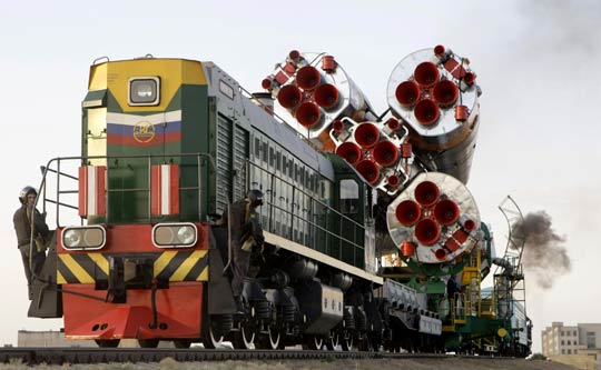 组图:俄"联盟TMA—16"飞船运往发射平台(2)