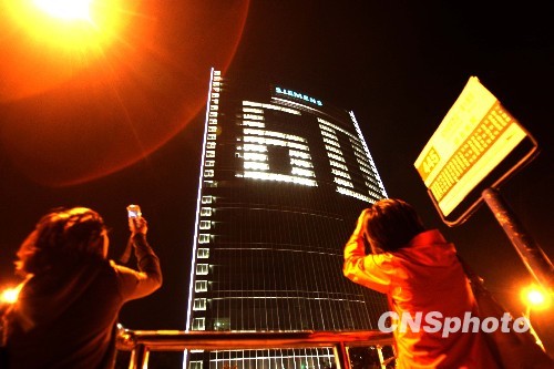 9月28日晚,北京一外企办公大楼点亮“60”字样,庆祝新中国成立60周年。中新社发 张宇 摄