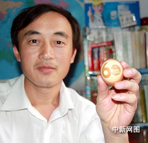 中新网洛阳9月29日电(记者 李贵刚 吕忠箱)河南宁陵县张弓镇南村民间艺人李振宇利用一年的时间,采用微雕技术,在小小的蛋壳上刻画出栩栩如生的毛泽东、周恩来和十大元帅肖像庆祝伟大祖国六十周年的系列作品,祝愿伟大的祖国更加繁荣昌盛。(完)