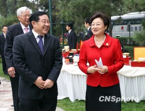 9月29日,中国中央涉侨单位在北京联合举办“庆祝中华人民共和国成立60周年招待会”,国务院侨办主任李海峰和科技部部长万钢出席招待会。中新社发 杜洋 摄