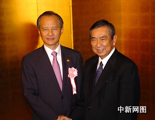 图为中国驻日大使崔天凯与日本前众院议长河野洋平。朱沿华 摄