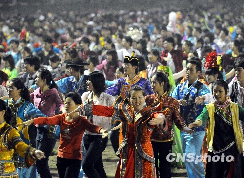 9月29日晚间,位于北京的中央民族大学学生集体宣誓,将在国庆庆典中发挥出最佳状态。誓师之后,学生们进行了最后一次带装演练。