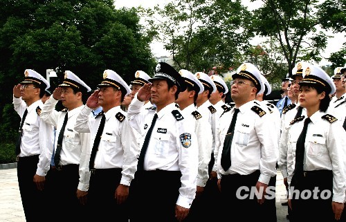 图:扬州海关举行升国旗仪式庆祝新中国60华诞(2)