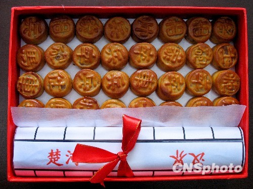 图为可食用的象棋月饼。中新社发 王路宪 摄