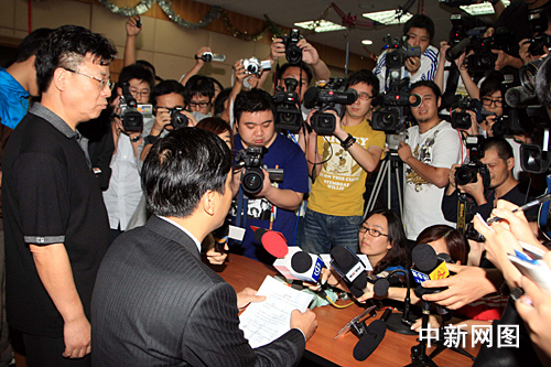 9月30日晚,本山传媒刘双平在上海华山医院向众媒体发布赵本山病情。刘双平表示,凌晨,赵本山因脑出血被紧急送至上海南汇医院,当天中午12点20分,赵本山被送至华山医院。目前,赵本山已经意识清醒,状态还不错。只是,我们要尊重隐私,无权发布任何关于病情的新闻。潘索菲 摄