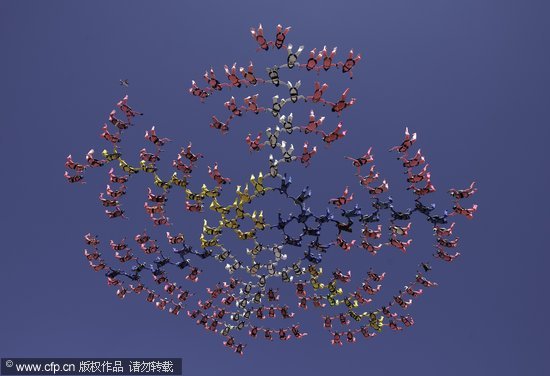 组图:181名女跳伞员表演跳伞创世界纪录(3)