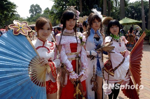 十月三日,广州长隆欢乐世界变成了动漫王国。全国各地的cosplay精英云集于此参与精英表演赛,精彩的动漫舞台剧、动漫街舞将游客带进一个梦幻的动漫世界。中新社发 刘卫勇 摄