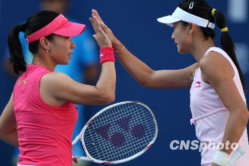 10月3日,2009年WTA皇冠级赛事中国网球公开赛展开了女双首轮的争夺。中国组合郑洁/晏紫对阵匈牙利人辛克与波兰人U-拉德万斯卡组合,结果郑洁/晏紫直落两局击败对手取得开门红,她们俩第二轮的对手将是首轮轮空的赛会2号种子澳大利亚组合斯托瑟/斯塔布斯。中新社发 富田 摄
