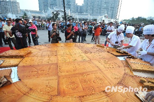 杭州市民分享直径3米、1吨重超级大月饼(2)