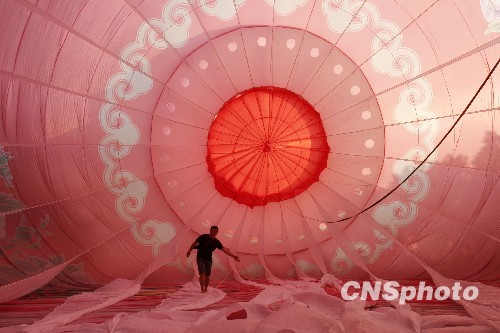 湖北武汉东湖边放飞巨型“灯笼”庆祝佳节,该“灯笼”其实是一个约20米高,直径25米的红色巨型热气球。