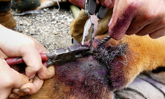野生马来虎误入偷猎者陷阱身受重伤(2)