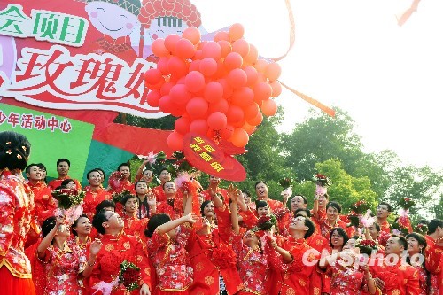 百对中外新人西湖边喜结连理。中新社发 李忠 摄