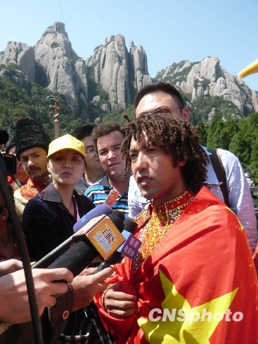 图为艾斯开尔在正式挑战前,接受媒体采访时称,此次高空生存最大挑战是要忍受四十九天的寂寞。中新社发 郑晓冲 摄