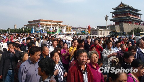 从2日至5日,天安门广场的日客流量已连续四天突破150万人次。中新社发 玉龙 摄