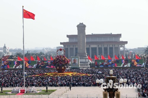 从2日至5日,天安门广场的日客流量已连续四天突破150万人次。中新社发 陈晓根 摄