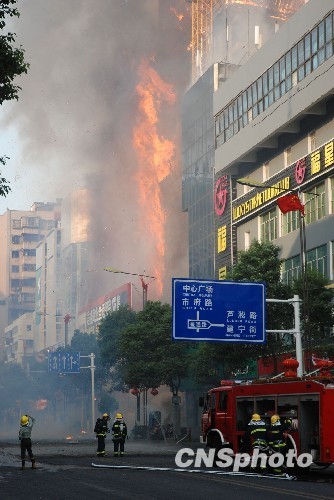湖南株洲30层在建高楼遭火灾。中新社发 王泊伟 摄