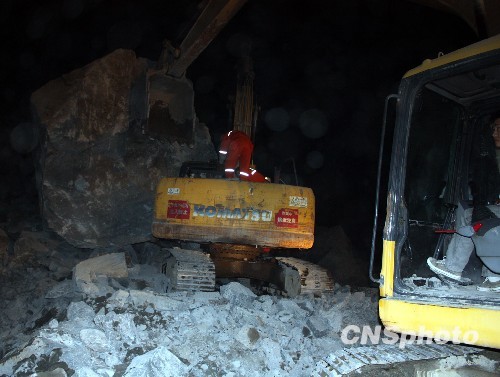 10月8日凌晨1时30分许,浙江省余姚市三七市镇一采石场发生塌方,一块高达5米的巨石压在挖掘机驾驶室一侧,司机被困在车里,驾驶室严重变形,整个驾驶室凹进去半米左右。消防官兵们经过10多分钟的救援,终于将被困司机成功救出,并送上120救护车迅速送往医院接受治疗。