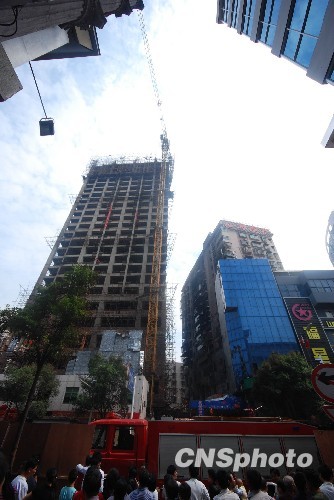 湖南株洲30层高楼遭大火 附近楼房居民遭殃(4)