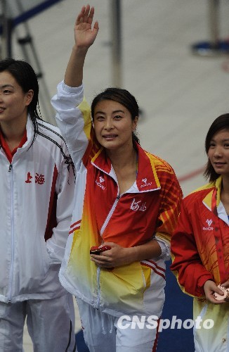 10月8日,第十一届全运会跳水比赛女子3米板决赛在济南奥体中心上演,代表河北队出战的“跳水女皇”郭晶晶以421.20分获得金牌,上海队吴敏霞和广东队何姿分获银牌和铜牌。