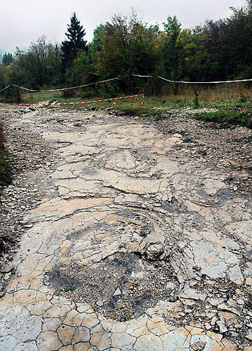 图为10月8日在法国东南部城市里昂附近的普拉涅拍摄的“恐龙足迹”。