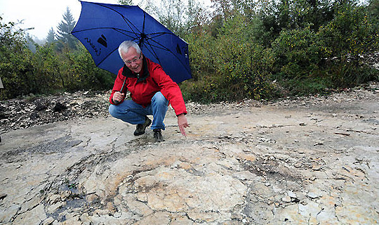 图为10月8日在法国东南部城市里昂附近的普拉涅拍摄的“恐龙足迹”。