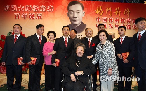 图为杨宝森的夫人(坐着)、京剧名家及多位杨派弟子在拜师现场合影留念。中新社发 王丽南 摄