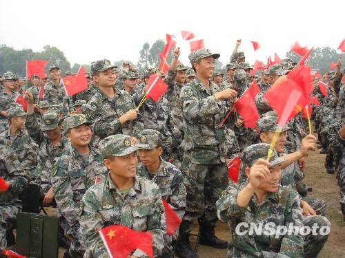 图为驻桂塔山雄师部队官兵欢迎慰问团的到来。中新社发 欧惠兰 摄