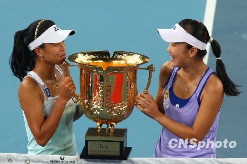 10月10日晚,总奖金为450万美元的WTA顶级巡回赛中国网球公开赛率先结束了女双的赛事。在中心球场进行的最后一场比赛中,海峡两岸组合中国选手彭帅和中华台北的谢淑薇以6-3/6-1轻松战胜了此前淘汰三对中国组合的库德里亚夫特塞娃/马卡洛娃夺得了2009年中国网球公开赛的女双冠军。