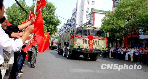 10万市民欢迎国庆受阅火箭兵凯旋归来。中新社发 朱定文 摄