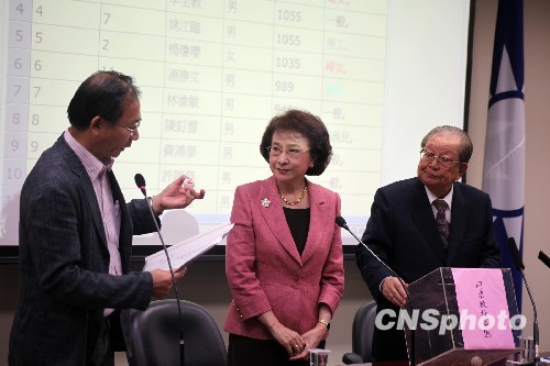 10月11日,中国国民党投票选举三十二席中常委,因成功当选的姚江临、李全教得票数均为一千零五十五票,故由国民党中央监选委员召集人邱创焕、林澄枝抽签决定最终次序。中新社发 李佳佳 摄