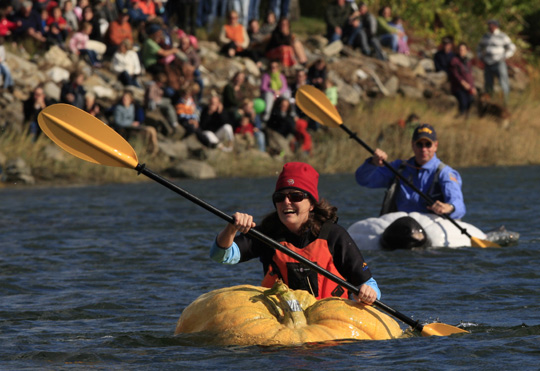 美国举行趣味横生的划“南瓜舟”大赛