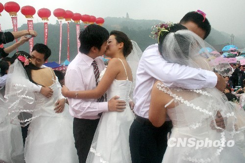 10月12日,享有“万里长江第一城”美誉的四川省宜宾市在长江、金沙江、岷江接合部举行“盛世中华”集体婚典,50对佳偶举行了庄严的升国旗仪式,共同完成了“家”字的书写,她们面对滚滚长江许下美好心愿,祝福祖国更加繁荣昌盛、国富民强。中新社发 陈涌徐伟 摄