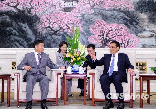 图为李克强会见蒙古国外长巴特包勒德。中新社发 廖攀 摄