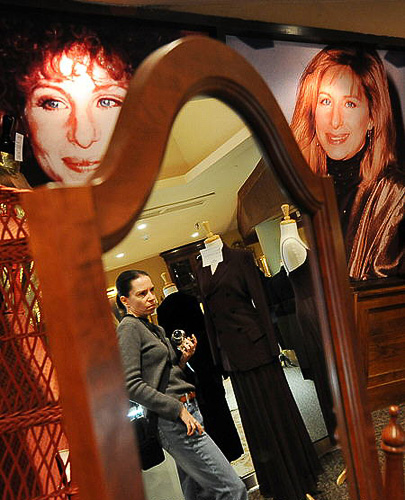 图为一名妇女在芭芭拉·史翠珊的拍卖预展上参观。
