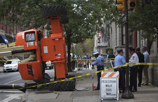 美国费城发生起重机翻车 驾驶舱撞破大楼(3)
