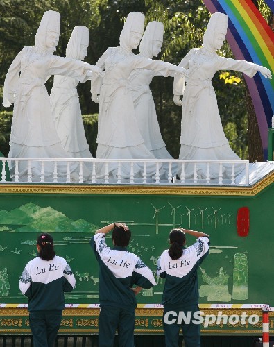 北京潞河中学“新疆班”学生迎来国庆彩车(2)