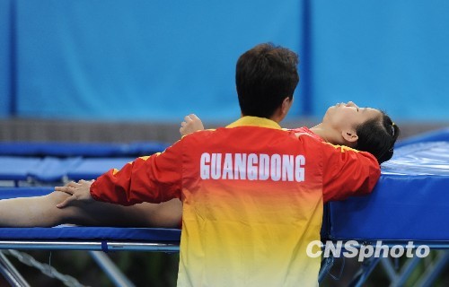全运会蹦床比赛:广东选手吴楚文意外受伤(2)
