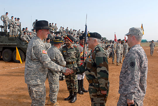 美国和印度10月12日开始举行大规模联合军事演习,美印认为两国加深军事合作对南亚地区至关重要。两国出动数以百计的军人、重型运输机和做战坦克,参加了这次两国间有史以来最大规模的军事演练。