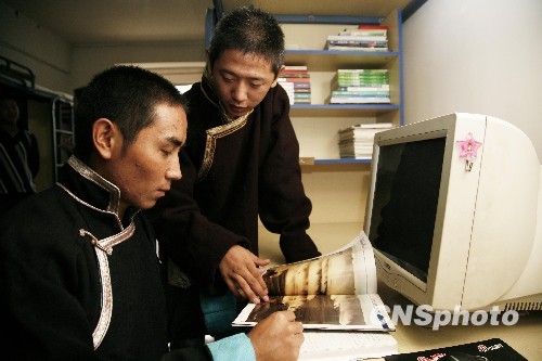 图为10月14日,来自西藏的国防生边巴次仁(左)和次仁多吉(右)在宿舍里看书。中新社发 刘冉阳 摄