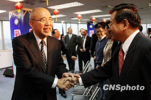 10月14日,中国国民党主席吴伯雄主持任内最后一次中常会后,出席国民党中央党部等为他举办的欢送茶会。多位中常委、党籍民代等到场致意,更有党籍女“立委”献花送吻。10月17日,国民党将在台北举行18次全代会,新旧主席进行交接。中新社发 黄少华 摄
