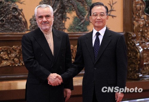 10月15日,中国国务院总理温家宝在北京人民大会堂会见了伊朗第一副总统拉希米。中新社发 廖攀 摄