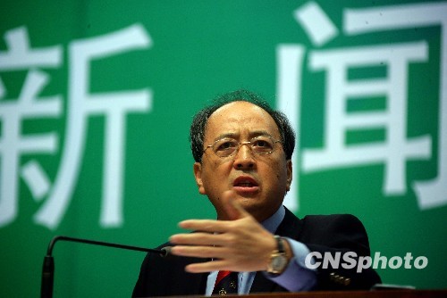 图为国家体育总局副局长肖天回答记者关于媒体报道的前阶段全运会跳水金牌内定的问题。中新社发 刘震 摄