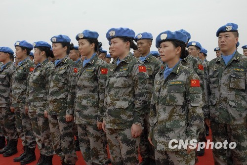 10月15日下午,应联合国请求,经中央军委批准,170名头戴蓝色贝雷帽、身着07式迷彩服的中国第六批赴黎巴嫩维和工兵营维和官兵及第五批医疗分队从昆明出发,乘包机前往黎巴嫩南部地区,第五批医疗分队共60名官兵,由成都军区昆明总医院的优秀医护人员和保障人员组成,主要负责对联合国驻黎巴嫩部队进行医疗卫勤保障和为当地民众进行人道救援。中新社发 杨洋 摄