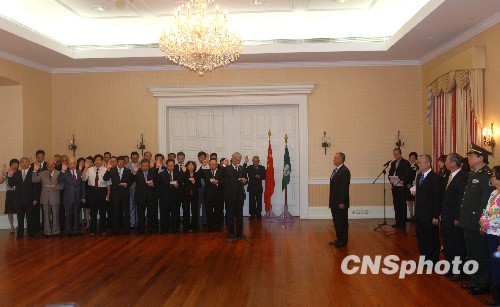十月十六日中午,澳门特区第四届立法会二十九名议员在特区政府总部举行宣誓就职仪式,由资深议员刘焯华领誓,行政长官何厚铧监誓。中新社发 毕永光 摄