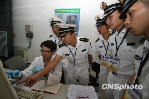 十月十六日,八十多位驻香港解放军官兵来到香港城市大学,体验大学生活开展交流联谊活动。图为官兵参观“城大”超金刚石及先进薄膜研究中心。中新社发 郑祚声 摄