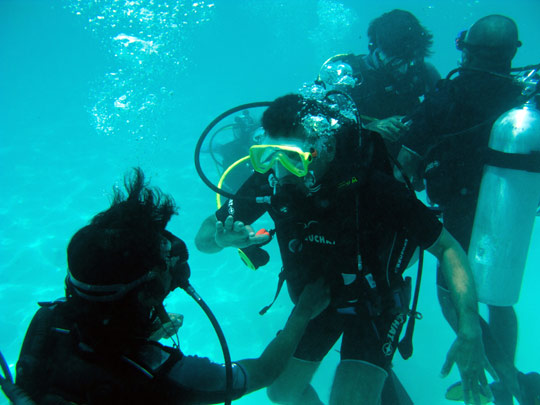 10月17日,印度洋岛国马尔代夫将首次在水下召开内阁会议。马尔代夫总统纳希德亲自主持此次水下内阁会议,有十四名内阁部长参加。马尔代夫此次召开水下内阁会议的目的是引起国际社会关注,提醒人们全球气候变暖对岛国造成的影响,告知人们低地岛国面临的危险和困境。图为16日马尔代夫内阁为潜水开会进行最后一次彩排。