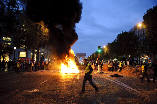 组图:法国农民放火封堵香榭丽舍大道(3)