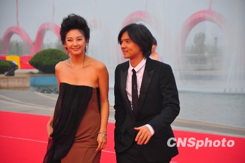 10月17日下午,第18届中国金鸡百花电影节“星光大道”——明星走红地毯仪式在南昌举行。香港演员冯德伦与“星女郎”张雨绮步入红地毯。中新社发 段长征 摄
